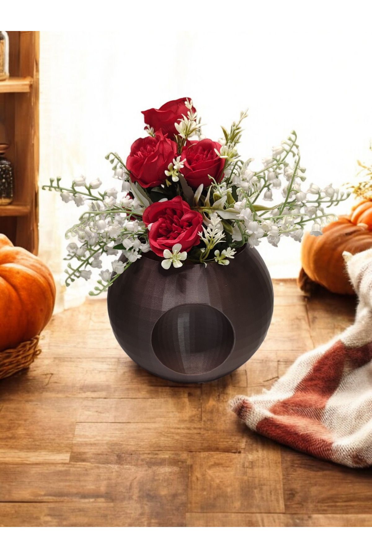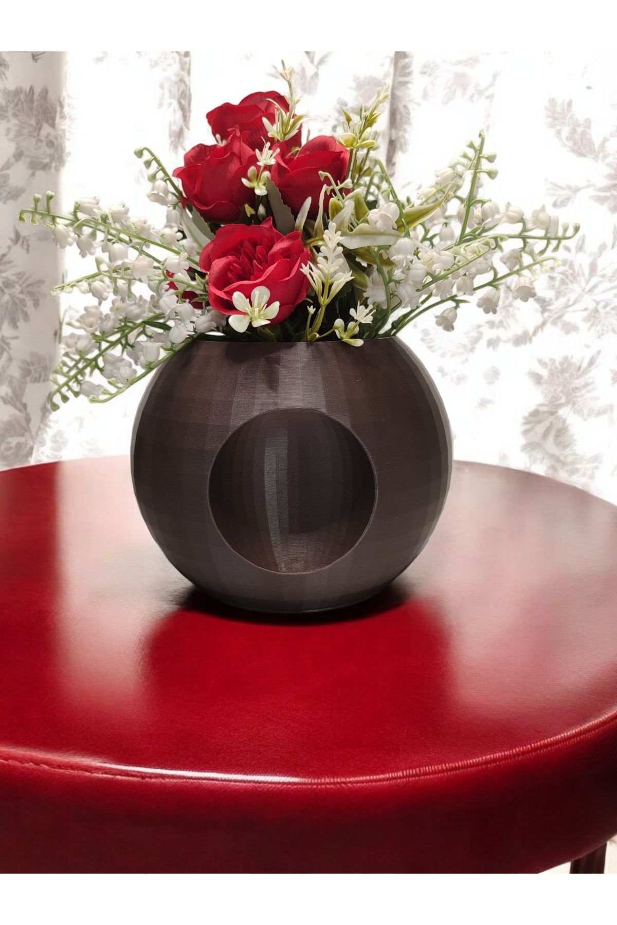 ÇİÇEKLER DAHİL DEĞİLDİR, SADECE VAZO İLANIDIR. Modern tasarımıyla alışılmışın dışında bir tasarım seçeneği sunmaktadır. Sıradan seramik ya da taş tozu vazolara göre kırılmalara daha dayanıklıdır. Özellikle çocuklu ve evcil hayvanlı evlerde gönül rahatlığıyla kullanılabilir. Üretim malzemesi sert bir plastik olan pla’dır ve çevre dostudur. Islak veya nemli bir bezle temizliğini kolayca yapabilirsiniz. Diğer dekoratif ürünler ve özel tasarımlar için mağazamızı ziyaret edebilirsiniz. Siparişiniz sizin için özenle hazırlanıp hızlıca kargoya teslim edilecektir. Yükseklik 14 cm, Ağız Çapı 10,5 cm