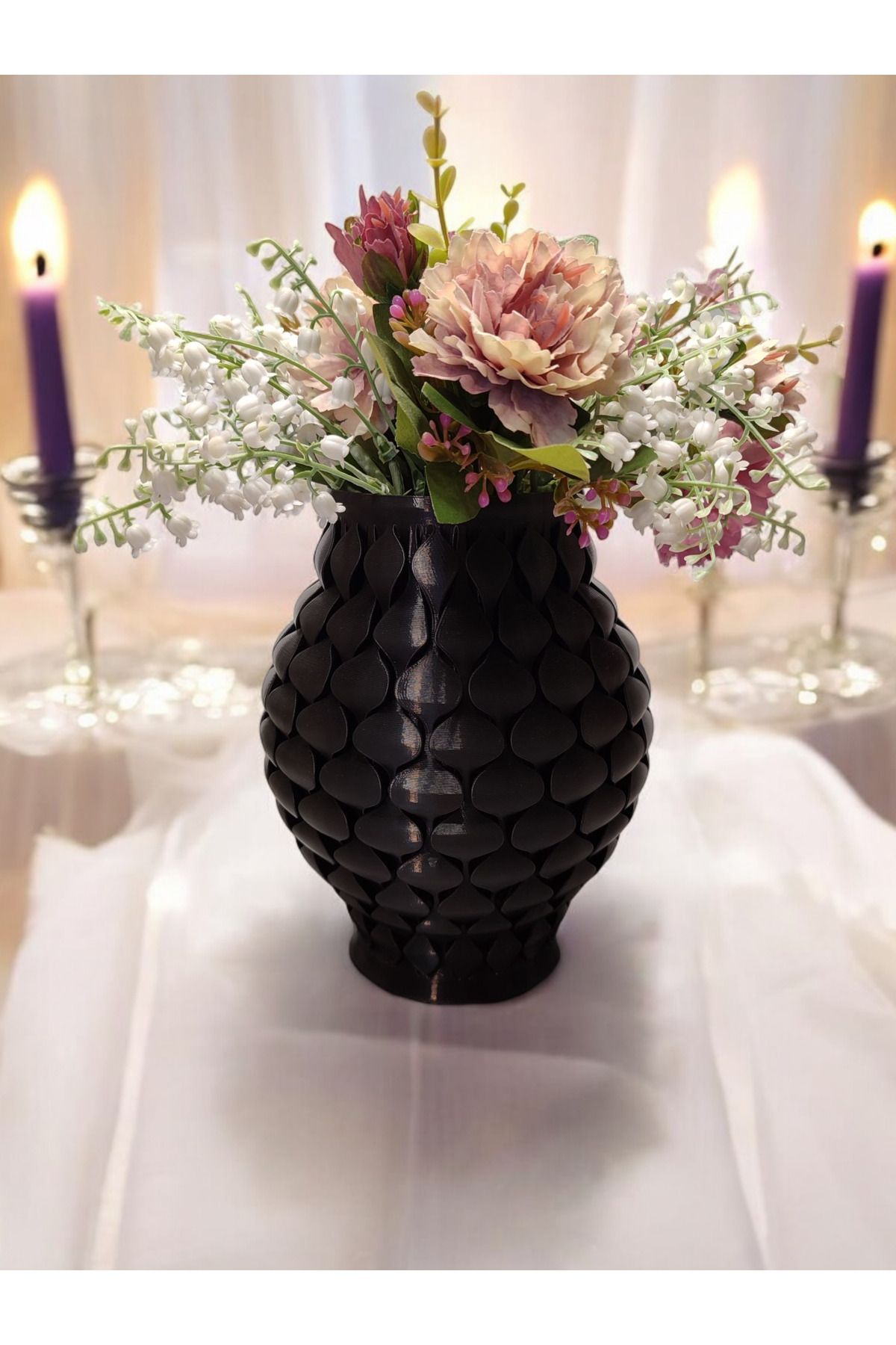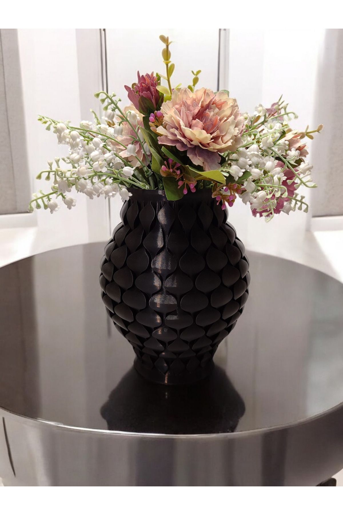 Pullu İskandinav Tarz Vazo Özel Tasarım Dekoratif Vazo Biyoplastik Siyah