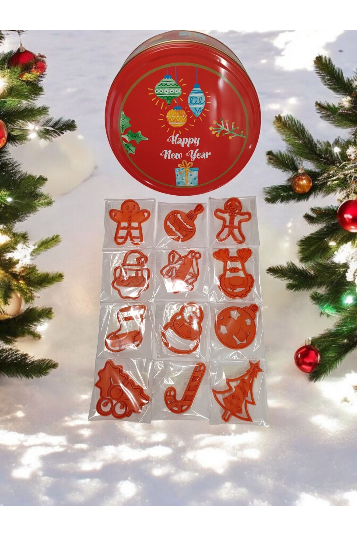 Set İçeriği: Kurabiye Adam, Geyik, Noel Baba, Noel Çanı, Yılbaşı Ağacı, Ökse Otu, Çorap, Kardan Adam ve Ornament(yılbaşı süsü) Üretim malzemesi çevre dostu PLA’dır. Uzun ömürlü kullanıma uygun, dayanıklı sert plastiktir. 50 derece üzeri sıcaklıktan kaçınılmalıdır. Temizliği su ve deterjan ile yapılmalıdır. Bulaşık makinesinde YIKANMAZ. Kolay uygulama için kalıbı unlama önerilir. Şeker Hamuru ile kullanılabilir. Oyun hamuru ve kinetik kum kalıbı olarak kullanılabilir. Polimer kil ve seramik çalışmaları için uygundur. , Ölçü: Çorap 7×7,5 cm, Baston Şeker 9×5 cm, Gingerbreadman Kurabiye Adam 9×8 cm, Geyik 6×9 cm, Kardan Adam 6,5×8,5 cm, Ornament 7×8,5 cm, Ökse Otu Mistletoe 9,5×7,5 cm, Mutlu Gingerbreadman 6,5×9 cm, Çam Ağacı 7,5×11 cm, Çan 8,5×7 cm,Noel Baba 6×8,5 cm, Ornament 6×8,5 cm Kurabiye Kutusu Çap 24 cm, 3.6 litre