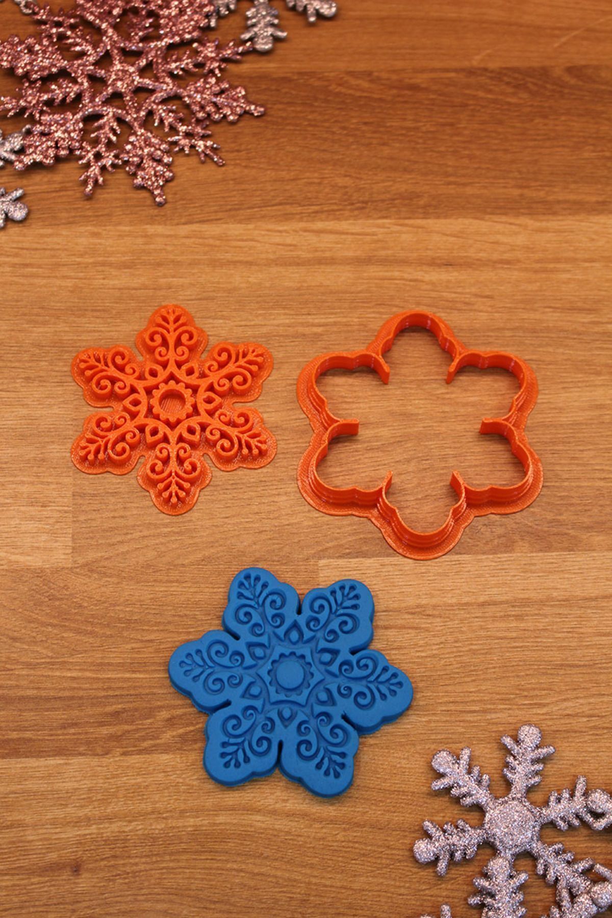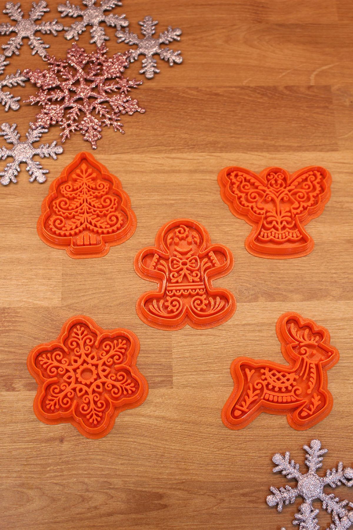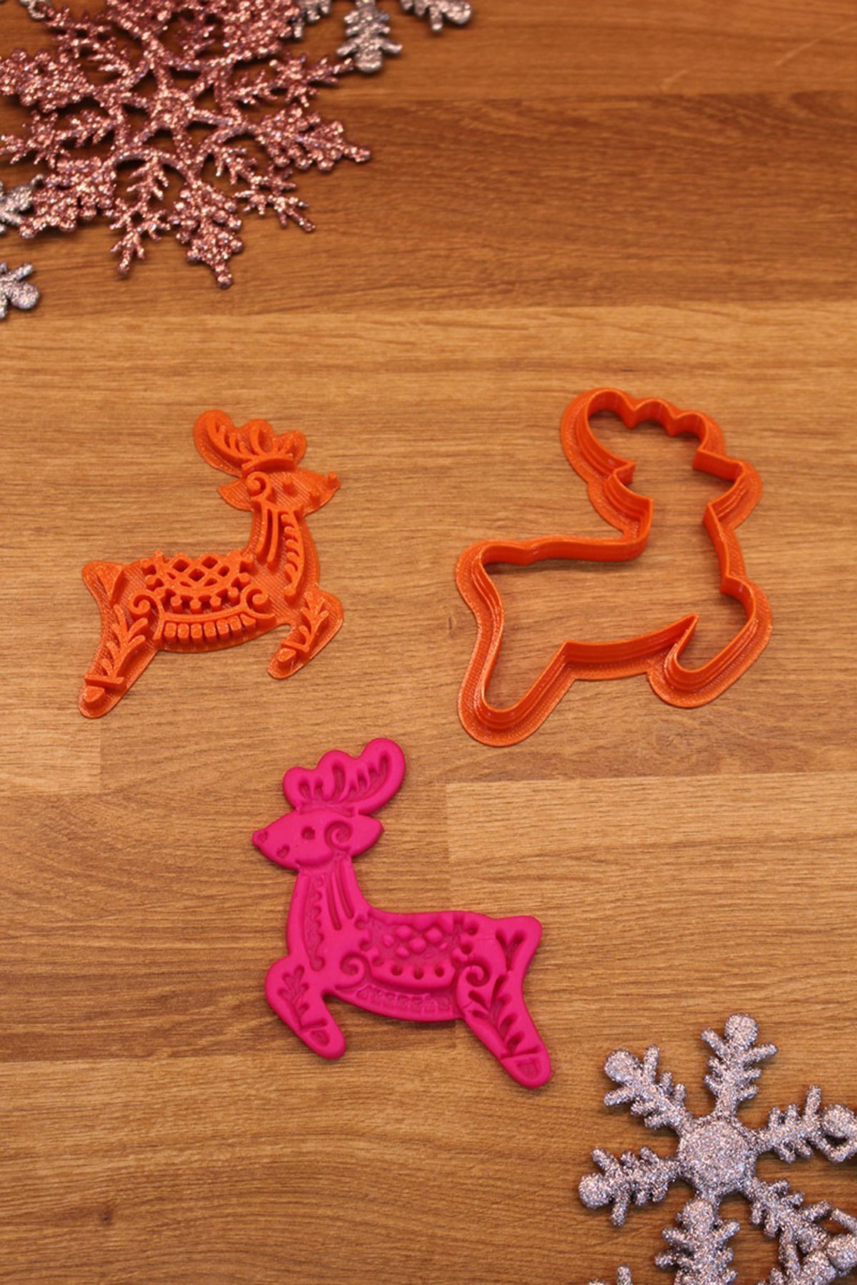 Üretim malzemesi çevre dostu PLA’dır. Uzun ömürlü kullanıma uygun, dayanıklı sert plastiktir. 50 derece üzeri sıcaklıktan kaçınılmalıdır. Temizliği su ve deterjan ile yapılmalıdır. Bulaşık makinesinde YIKANMAZ. Kolay uygulama için kalıbı unlama önerilir. Şeker Hamuru ile kullanılabilir. Oyun hamuru ve kinetik kum kalıbı olarak kullanılabilir. Polimer kil ve seramik çalışmaları için uygundur. Ölçü: Kurabiye Adam 6×7,5 cm, Melek 7,5×6,5 cm, Yılbaşı Ağacı 6×7,5 cm, Geyik 6,5×7,5 cm, Kar Tanesi 7,5 cm