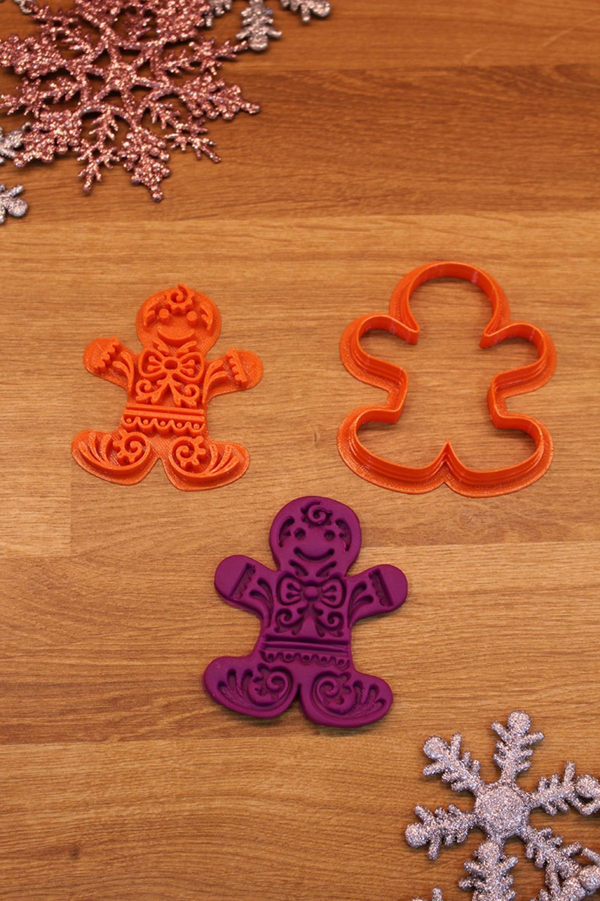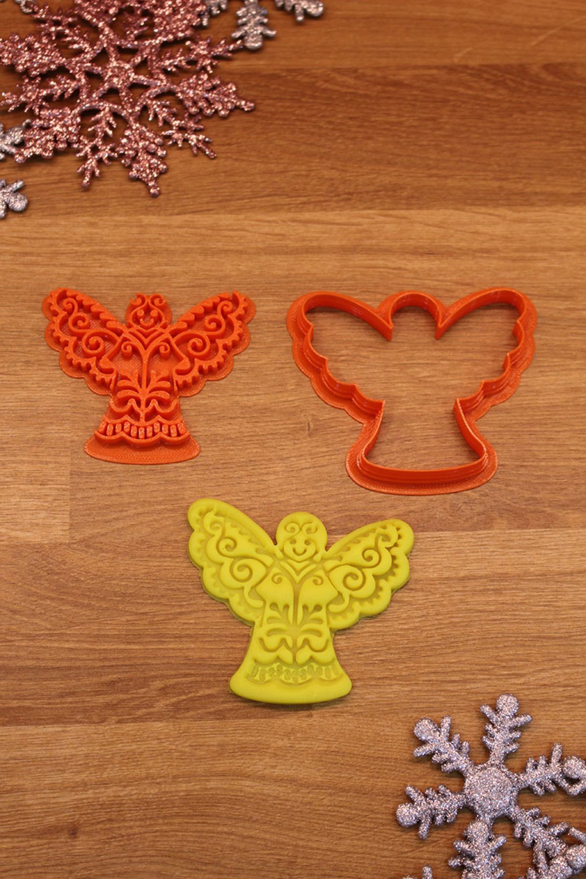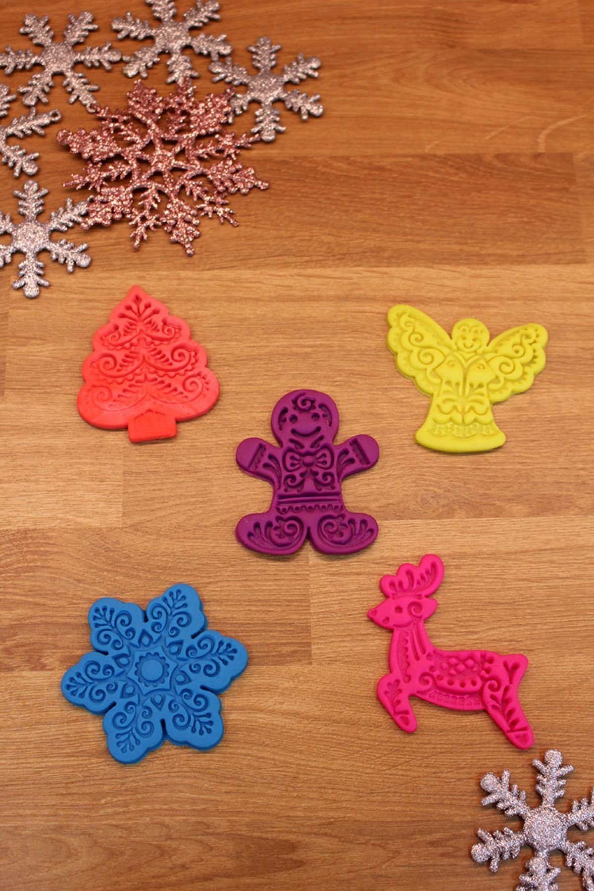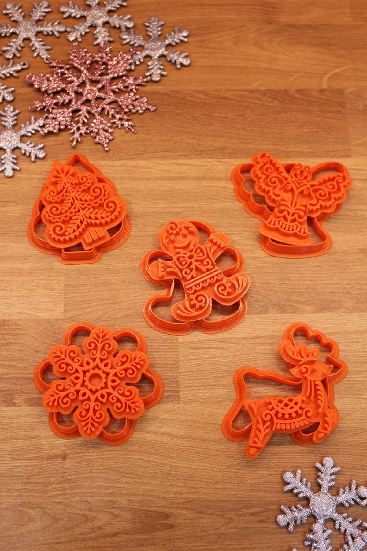 Üretim malzemesi çevre dostu PLA’dır. Uzun ömürlü kullanıma uygun, dayanıklı sert plastiktir. 50 derece üzeri sıcaklıktan kaçınılmalıdır. Temizliği su ve deterjan ile yapılmalıdır. Bulaşık makinesinde YIKANMAZ. Kolay uygulama için kalıbı unlama önerilir. Şeker Hamuru ile kullanılabilir. Oyun hamuru ve kinetik kum kalıbı olarak kullanılabilir. Polimer kil ve seramik çalışmaları için uygundur. Ölçü: Kurabiye Adam 6×7,5 cm, Melek 7,5×6,5 cm, Yılbaşı Ağacı 6×7,5 cm, Geyik 6,5×7,5 cm, Kar Tanesi 7,5 cm